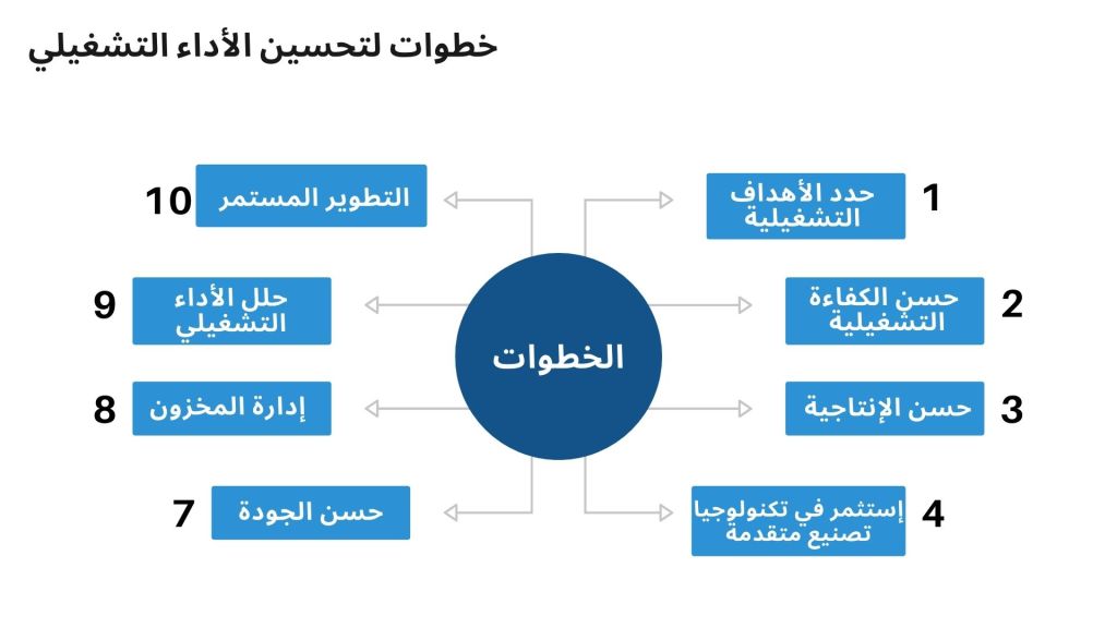 تشكل إدارة الإنتاج والجودة والمخزون أنشطة التشغيل الأساسية بأي مصنع، وإن زيادة الكفاءة والإنتاجية هي الهدف النهائي لتحسين التشغيل وإدارة العمليات. تتضمن إدارة العمليات في المصنع كل من الأنشطة المتعلقة بتشغيل تكنولوجيا التصنيع، وإعداد وتنفيذ نظام التشغيل، وجدولة الإنتاج، وضمان جودة المنتج، ومناولة المخزون، وتصنيع الطلبات حسب متطلبات العميل، وقياس الأداء، وتطويره. وبمساعدة تقنيات ومرافق الإنتاج، تستطيع إدارة المصنع تحسين القدرات الإنتاجية وتصنيع منتجات ذات جودة عالية وخالية من العيوب ووفقا لمتطلبات المستهلكين. تعد تكنولوجيا التصنيع المتقدمة مهمة لأي مصنع كونها تساهم وبقوة في مكننة الإنتاج، وتقليل مساهمة القوى العاملة في الإنتاج، والاستفادة من فوائض وفورات الإنتاج الكبير، وخفض تكلفة المنتجات، وتقليص مهلة التوريد للسوق، والقضاء على الفاقد، وضمان الجودة، وتحقيق رضا المستهلكين. فيما يلي بعض الخطوات المهمة لتحسين كفاءة وإنتاجية التشغيل: