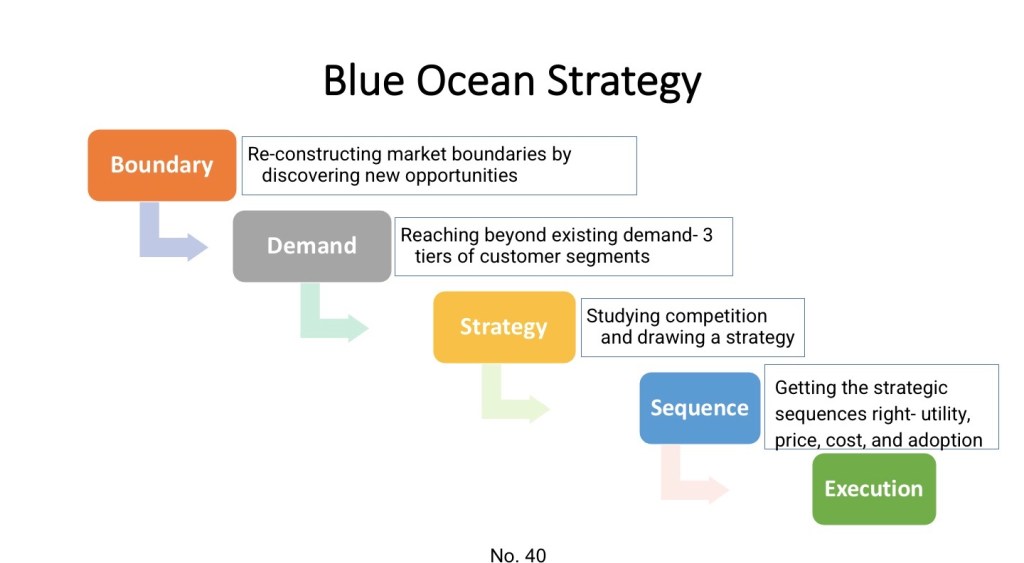 - One is cognitive: changing the mindset and beliefs of employees that the way forward to profitability is not through a red ocean but a blue ocean strategy.
