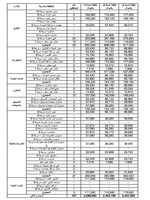 خطوة 4- تقدير تكلفة الموظفين سنوياً ولمدة (3-5) سنوات قادمة.