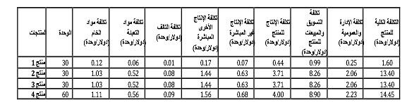 الخطوة 3- تقدير تكاليف الإنتاج المباشرة وغير المباشرة السنوية والطاقة الإنتاجية السنوية موزعة على المنتجات الرئيسية.