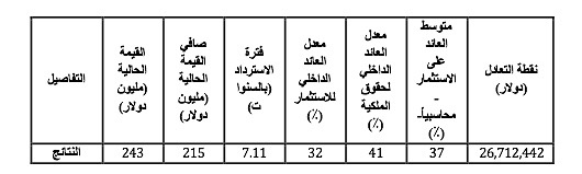 الخطوة 5- تقييم مؤشرات جدوى المشروع بمقارناتها مع مثيلاتها المعتمدة في قطاع الصناعة، وذلك للتحقق من سلامة جدوى المشروع.