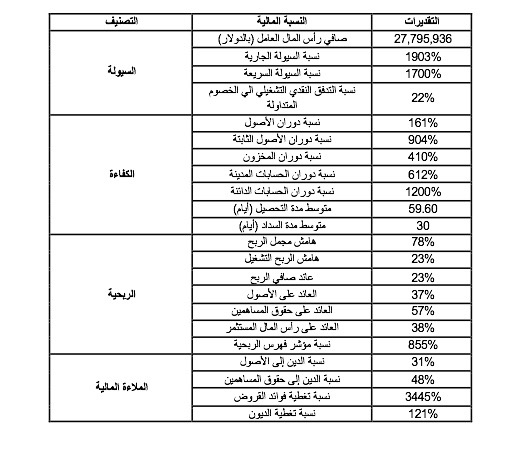 فيما يلي التحليل المالي باستخدام النسب المالية لمنشأة تصنيع أدوية: