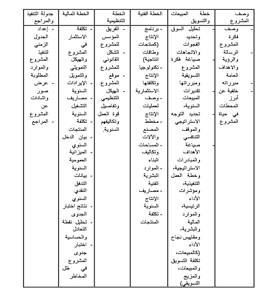 فيما يلي نموذج استرشادي لمكونات خطة عمل المشروع الصناعي: