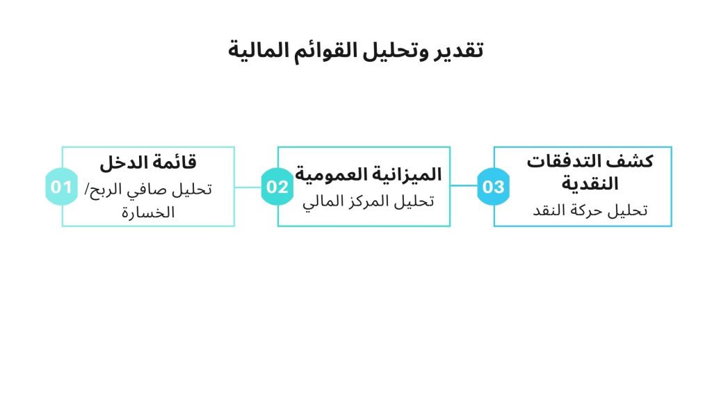 التنبؤات المالية: لتحليل صافي القيمة الحالية للتدفقات النقدية المستقبلية للمشروع ومعدل العائد الداخلي ومدة الاسترداد، يلزم تقدير قائمة الدخل والميزانية العمومية والتدفقات النقدية سنويا وطوال عمر المشروع، كما يمكن تقدير صافي قيمة المشروع الحالية عبر خصم التدفقات النقدية السنوية المستقبلية للمشروع وطرحها من الكلف الاستثمارية.
